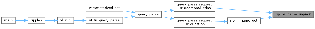 Unpack a domain name from a message Resource Record (RR), source may be compressed. Unpacked name will be in "network" format. Use rip_ns_name_ntop() function to convert from "network" to regular C string.