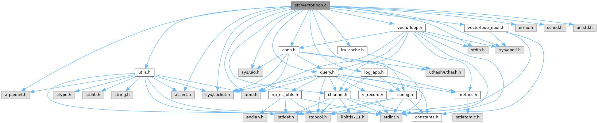 #include <arpa/inet.h>#include <assert.h>#include <errno.h>#include <sched.h>#include <stdio.h>#include <sys/epoll.h>#include <sys/socket.h>#include <sys/uio.h>#include <unistd.h>#include <time.h>#include "channel.h"#include "config.h"#include "conn.h"#include "log_app.h"#include "lru_cache.h"#include "query.h"#include "utils.h"#include "vectorloop.h"#include "vectorloop_epoll.h"